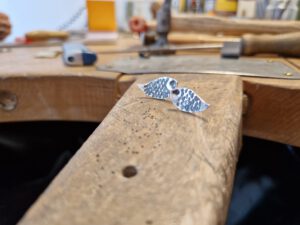 Du entwickelst Dein Schmuckstück Schritt für Schritt aus einer eigenen Idee heraus und setzt diese mit den vorhandenen Werkzeugen und ausgewählten Arbeitstechniken des Goldschmiedehandwerks um. Dabei begleite ich Dich darin, eine Form zu finden, die sowohl zu Dir passt als auch im zeitlichen Rahmen des Workshops gut realisierbar ist.